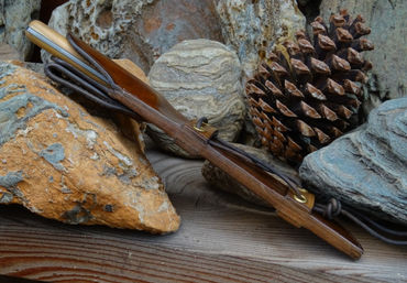 Na ručce dřívko Ořešáku královského a mosazné piny.